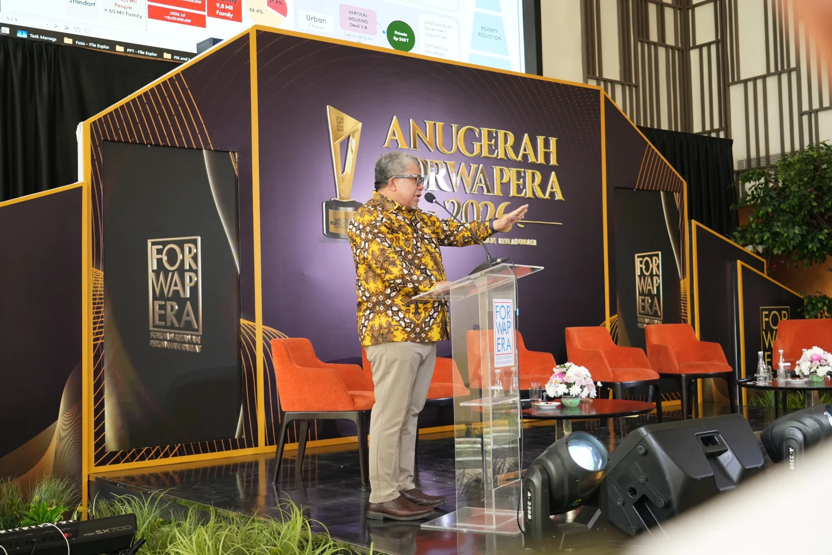 Wakil Menteri Perumahan dan Kawasan Permukiman (PKP) Fahri Hamzah menekankan pentingnya penguatan data perumahan serta peningkatan kualitas hunian masyarakat saat memberikan keynote speech pada Anugerah Forwapera 2026 di The Hub Jakarta, Kamis (5/2/2026).