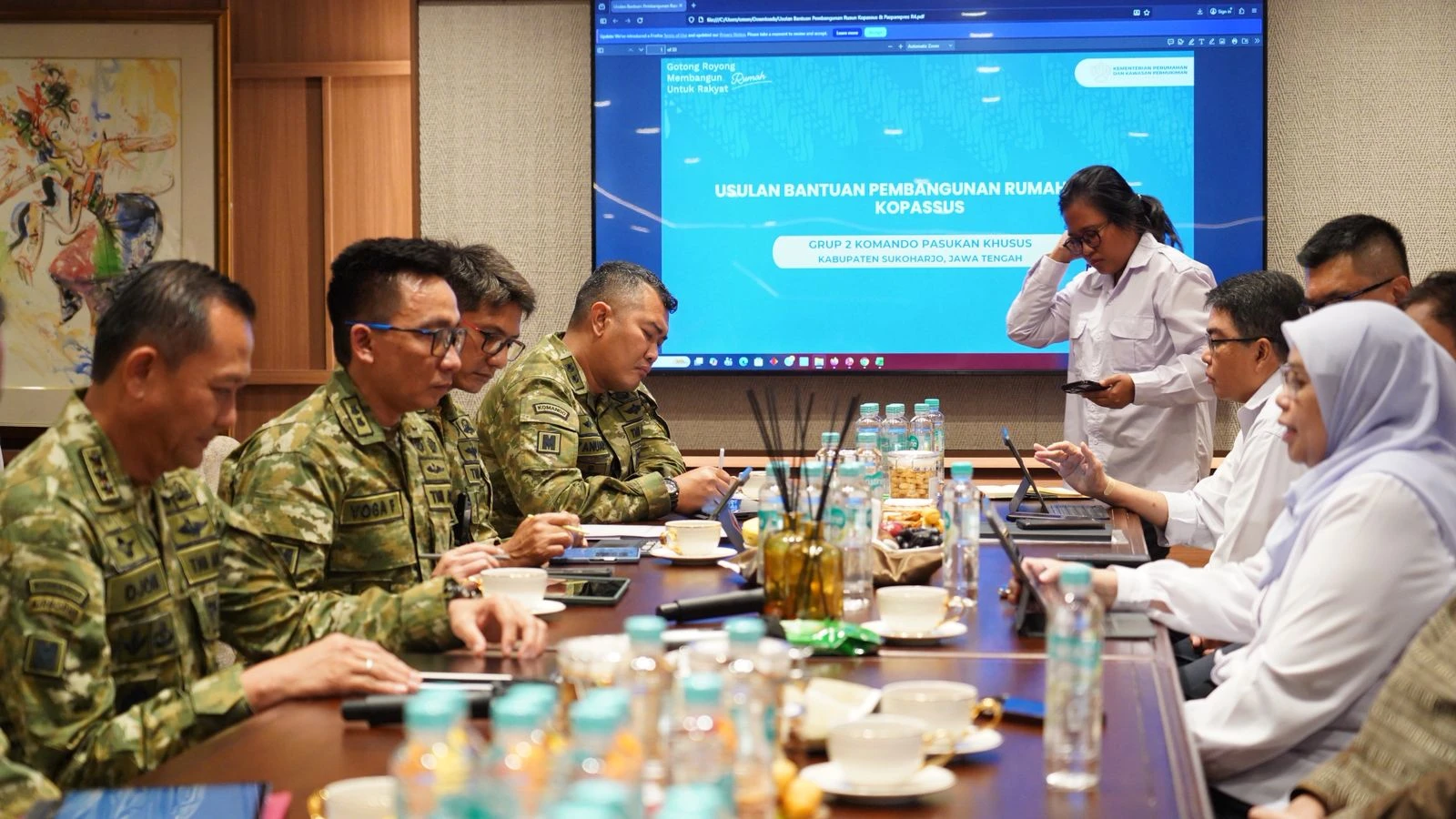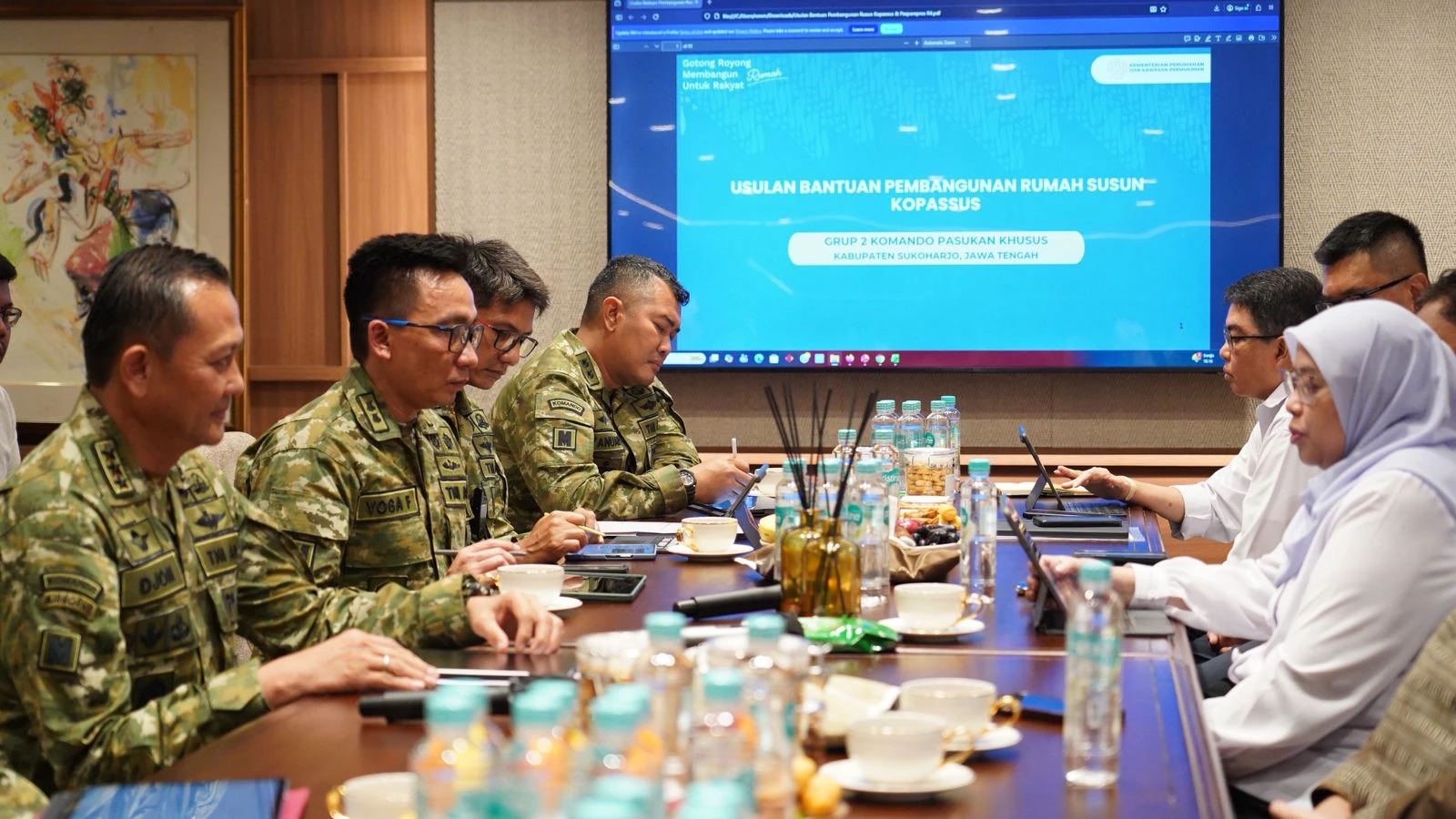 “Kita hari ini membicarakan persiapan untuk pembangunan rusun bagi prajurit TNI AD, khususnya Kopassus di Solo, untuk tahun ini. Ini sesuai dengan aspirasi dari beliau dan juga sudah saya diskusikan dengan Panglima TNI,” ujar Menteri Ara.