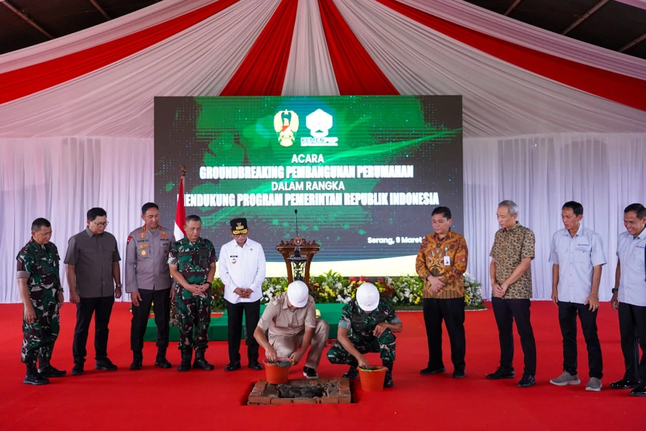 Serang - Menteri Perumahan dan Kawasan Permukiman (PKP) Maruarar Sirait (Ara) bersama Inspektur Jenderal TNI Angkatan Darat (Irjenad) Letjen TNI Erwin Djatniko, S.Sos melakukan peletakan batu pertama (groundbreaking) pembangunan rumah untuk Prajurit TNI AD dan Masyarakat Berpenghasilan Rendah (MBR) , di Serang Banten, Minggu (9/3/2025).