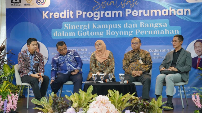 Jakarta — Kementerian Perumahan dan Kawasan Permukiman (PKP) menggandeng Universitas Trisakti dalam menyosialisasikan program Kredit Program Perumahan (KPP) dengan mengangkat tema “Sinergi Kampus dan Bangsa dalam Gotong Royong Perumahan”. Acara ini berlangsung di Gedung M Kampus A Universitas Trisakti, Selasa (23/09/2025).