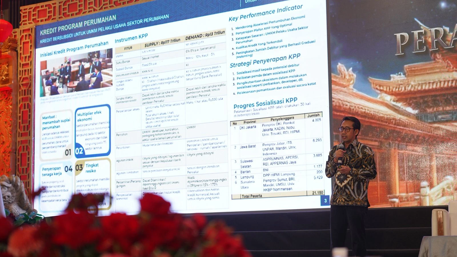 Kota Batu, Jawa Timur - Pemerintah melalui Kementerian Perumahan dan Kawasan Permukiman (PKP) menggandeng Paguyuban Sosial Marga Tionghoa Indonesia (PSMTI) untuk bersinergi dalam mensosialisasikan Kredit Program Perumahan (KPP) serta Fasilitas Likuiditas Pembiayaan Perumahan (FLPP) bagi masyarakat. Hal itu dilakukan guna mendorong capaian pembangunan Program 3 Juta Rumah sekaligus mendiseminasikan manfaat serta kemudahan akses pembiayaan melalui Program KPP dan FLPP bagi masyarakat di seluruh wilayah Indonesia.