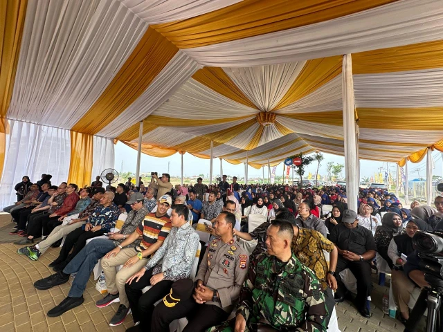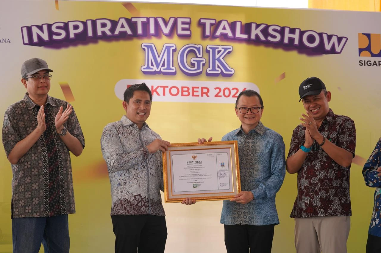 Kota Serang, Banten - Kementerian Pekerjaan Umum dan Perumahan Rakyat (PUPR) melalui Direktorat Jenderal Perumahan menyerahkan Sertifikat Bangunan Gedung Hijau (BGH) untuk perumahan bersubsidi Mulia Gading Kencana (MGK) di Kota Serang, Provinsi Banten, Sabtu (5/10/2024). Adanya sertifikasi BGH diberikan agar pembangunan hunian dapat dilaksanakan secara tertib dan mendorong penyelenggaraan bangunan gedung
