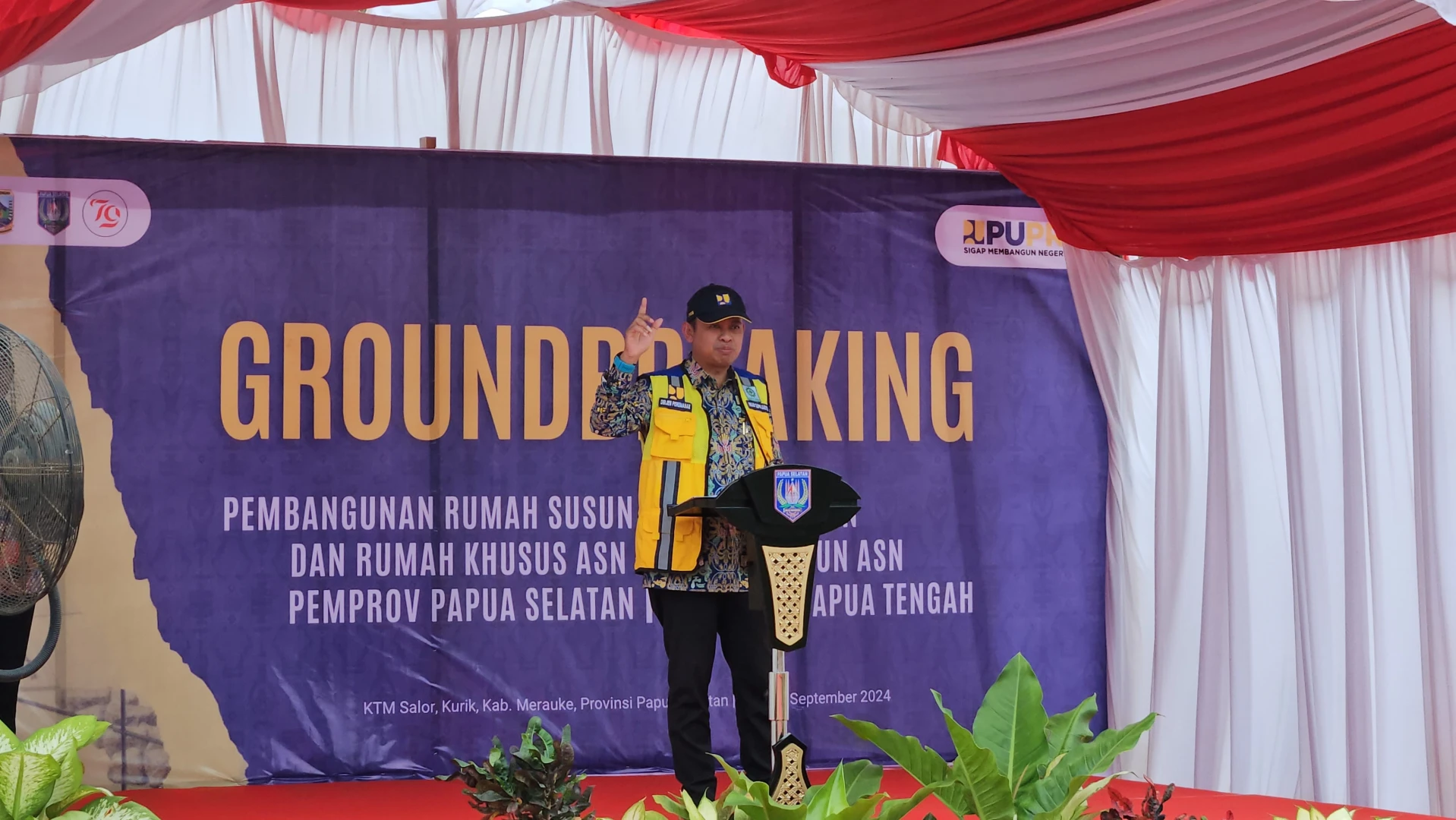 "Hari ini kita lakukan groundbreaking sebagai tanda dimulainya pekerjaan pembangunan Rusun dan Rusus Untuk ASN di Daerah Otonomi Baru (DOB) Papua khususnya di Provinsi Papua Selatan dan Provinsi Papua Tengah," ujar Direktur Jenderal Perumahan Kementerian PUPR, Iwan Suprijanto saat melakukan Groundbreaking Pembangunan Rusun dan Rusus ASN Pemprov Papua Selatan di Papua Selatan, Rabu (4/9/2024).