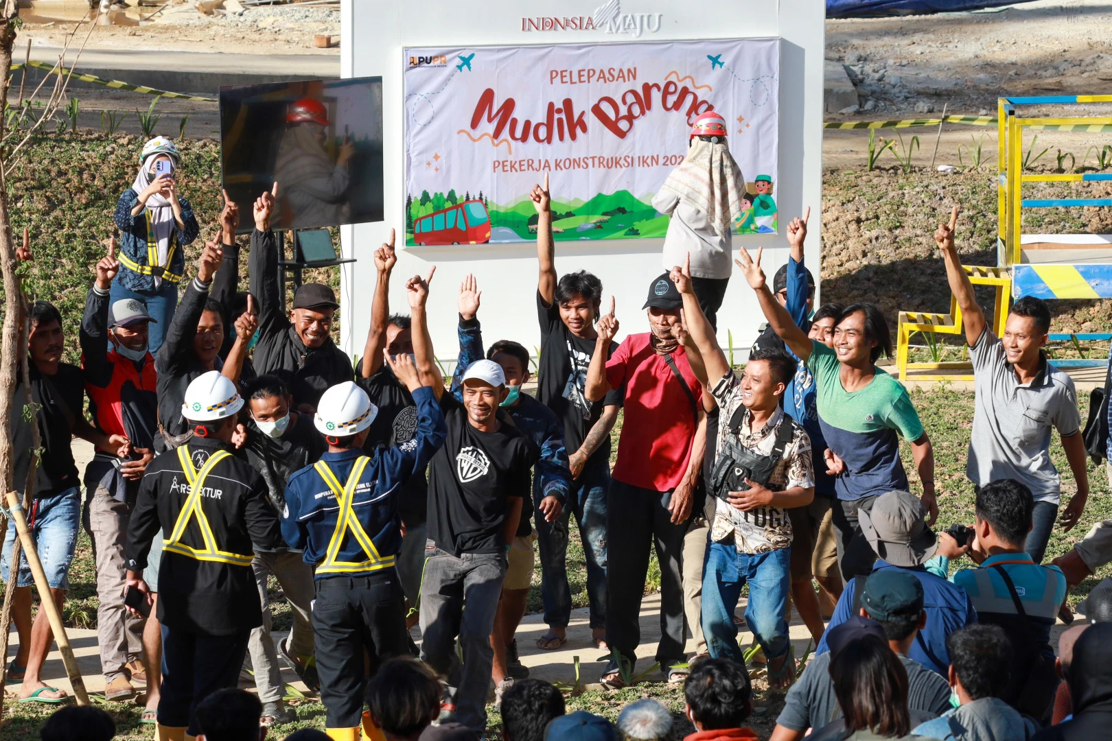 Jakarta - Kementerian Pekerjaan Umum dan Perumahan Rakyat (PUPR) melalui Direktorat Jenderal Perumahan melaksanakan kegiatan “Mudik Bareng Pekerja Kontruksi Ibu Kota Nusantara (IKN) 2024” di kawasan IKN Nusantara, Jum’at (5/4/2024). Tercatat sekitar 10 ribu orang pekerja kontruksi IKN akan kembali ke kampung halamannya masing-masing dengan menggunakan berbagai sarana moda transportasi baik melalui kapal laut serta pesawat udara.