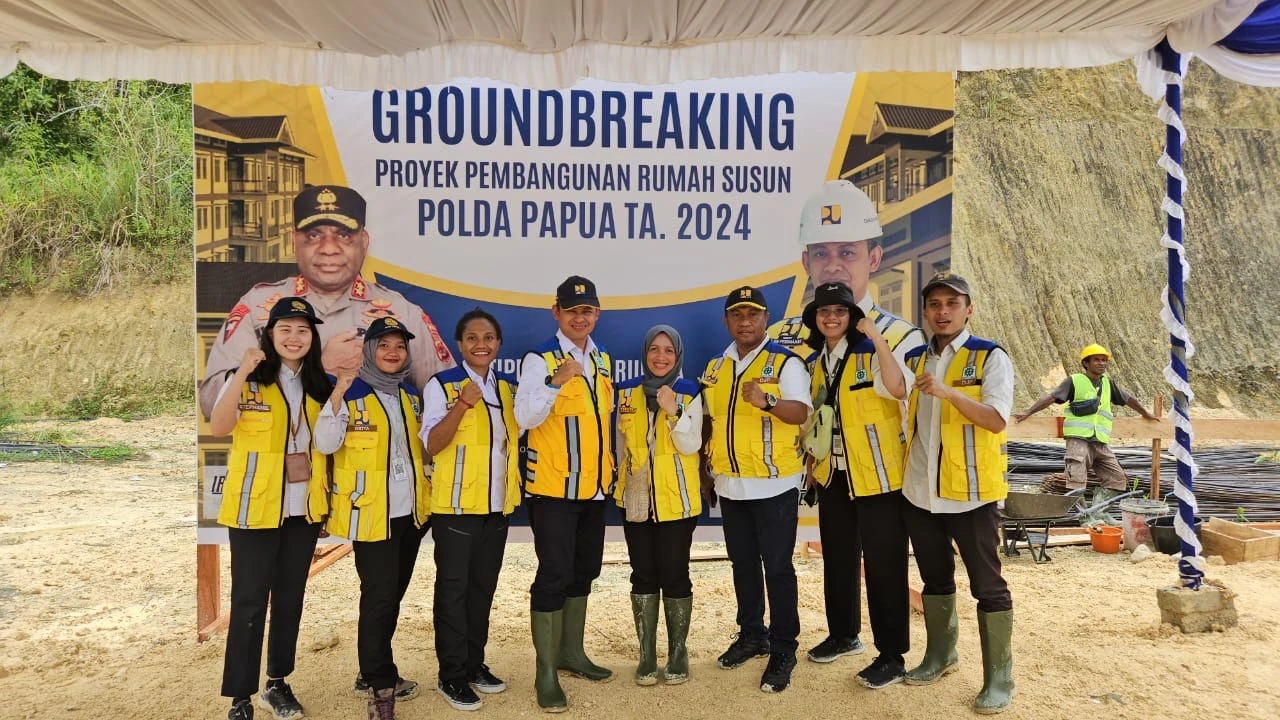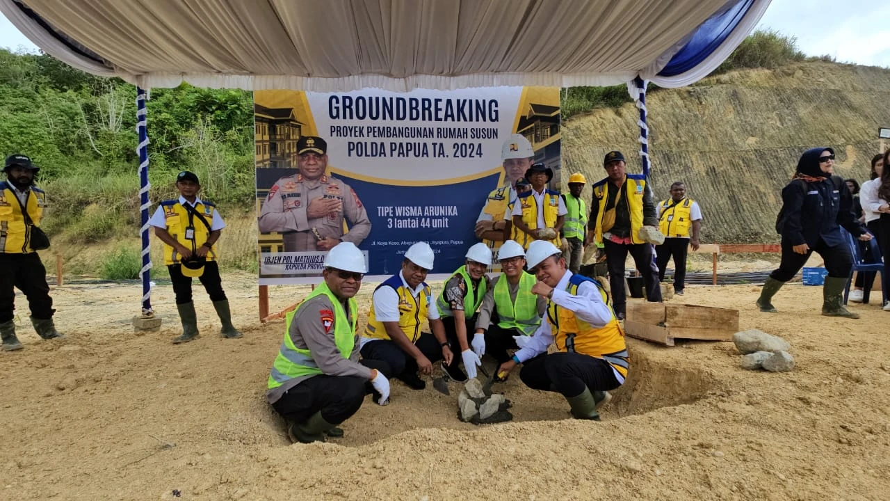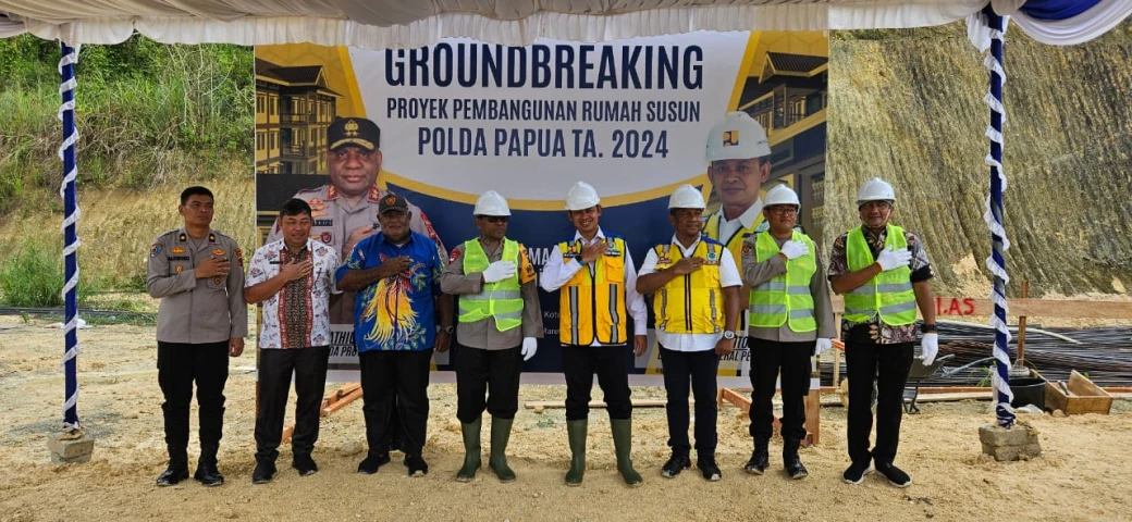 Kota Jayapura, Papua - Kementerian Pekerjaan Umum dan Perumahan Rakyat melalui Direktorat Jenderal Perumahan memulai pembangunan rumah susun (Rusun) untuk Kepolisian Daerah (Polda) Papua di Kota Jayapura, Provinsi Papua. Rusun yang akan diperuntukkan bagi polisi wanita (Polwan) yang bertugas di Markas Komando Polda Papua itu dibangun dengan tipe Wisma Arunika setinggi tiga lantai dengan 44 unit hunian yang mampu menampung 176 orang.