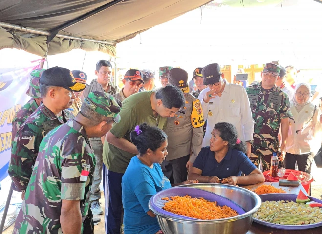 NTT - Menteri Perumahan dan Kawasan Permukiman (PKP) Maruarar Sirait (Ara) bersama Kepala Badan Nasional Penanggulangan Bencana (BNPB) Letjen TNI Suharyanto dan didampingi Direktur Jenderal Perumahan Iwan Suprijanto meninjau lokasi pengungsian erupsi Gunung Lewotobi di Desa Kobasoma, Kecamatan Titehena, Kabupaten Flores Timur, NTT, Rabu (13/11/2024).