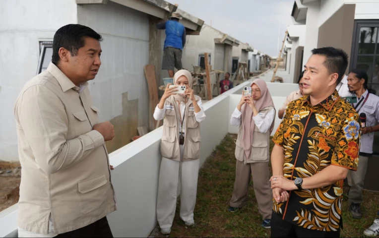 Bandung - Menteri Perumahan dan Kawasan Permukiman (PKP) Maruarar Siarait melakukan peninjauan lapangan ke kawasan hunian terpadu Podomoro Park Buah Batu, Kab. Bandung yang dikembangkan oleh Agung Podomoro Group, guna melihat langsung kualitas infrastruktur perumahan, kelengkapan fasilitas kawasan, serta penerapan pengelolaan lingkungan yang menyatu dengan konsep permukiman modern, Rabu (10/12/2025).