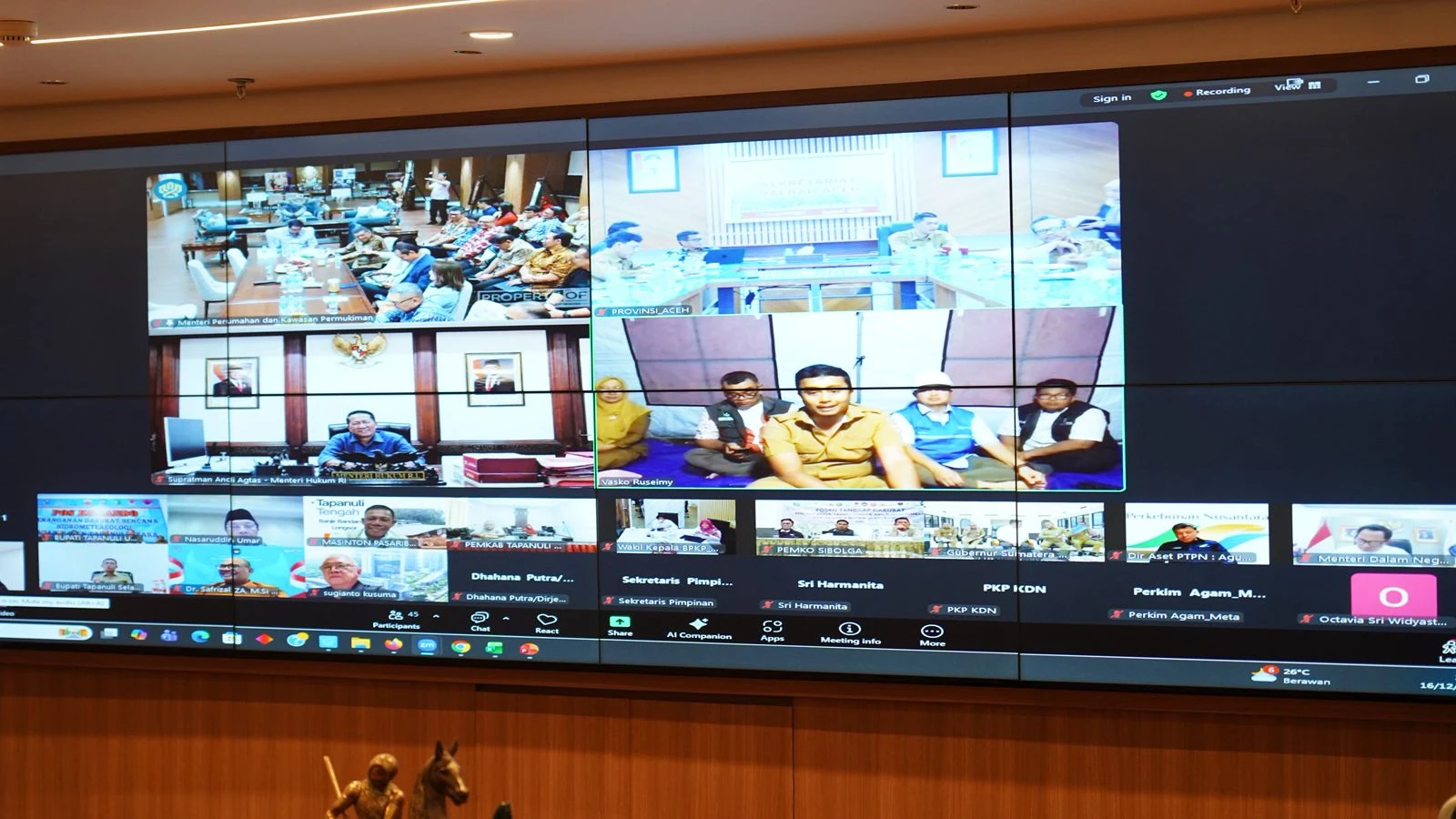 Rapat daring tersebut dihadiri oleh Menteri Hukum, Kepala BPKP, Menteri Dalam Negeri, Menteri Agama, Gubernur Aceh, Gubernur Sumatera Utara, serta Wakil Gubernur Sumatera Barat, sebagai bentuk sinergi lintas kementerian, lembaga, dan pemerintah daerah dalam percepatan penanganan pascabencana.