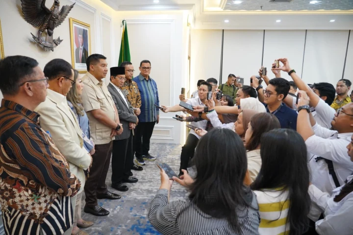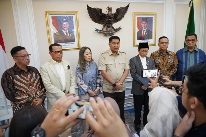 Jakarta - Menteri Perumahan dan Kawasan Permukiman (PKP) Maruarar Sirait (Ara) bersama Menteri Agama Nasaruddin Umar dan didampingi Direktur Utama (Dirut) PT Pertamina (Persero) Simon Aloysius Mantiri yang ditunjuk menjadi Bendahara Panitia Natal Nasional 2025, Dirjen Bimas Kristen Jeane Marie Tulung dan Dirjen Bimas Katolik Suparman mengadakan pertemuan membahas persiapan Natal Nasional Tahun 2025, Senin (13/10/2025).