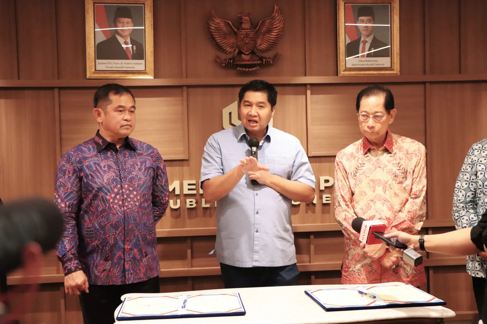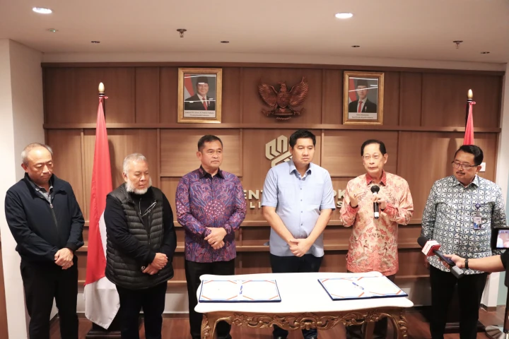 Menteri PKP Maruarar Sirait menyaksikan secara langsung prosesi penandatanganan Nota Kesepahaman tentang Penyaluran Bantuan Corporate Social Responsibility (CSR) untuk rehabilitasi rumah dinas prajurit TNI AD antara Tentara Nasional Angkatan Darat yang diwakili Kepala Staf Angkatan Darat (KASAD) Jenderal TNI Maruli Simanjuntak, M.Sc dengan PT. Bank Central Asia Tbk yakni Presiden Direktur BCA Jahja Setiaatmadja dan Direktur BCA Antonius Widodo Mulyono di Kantor Kementerian PKP Wisma Mandiri 2, Jakarta, Senin (26/5/2025) malam.