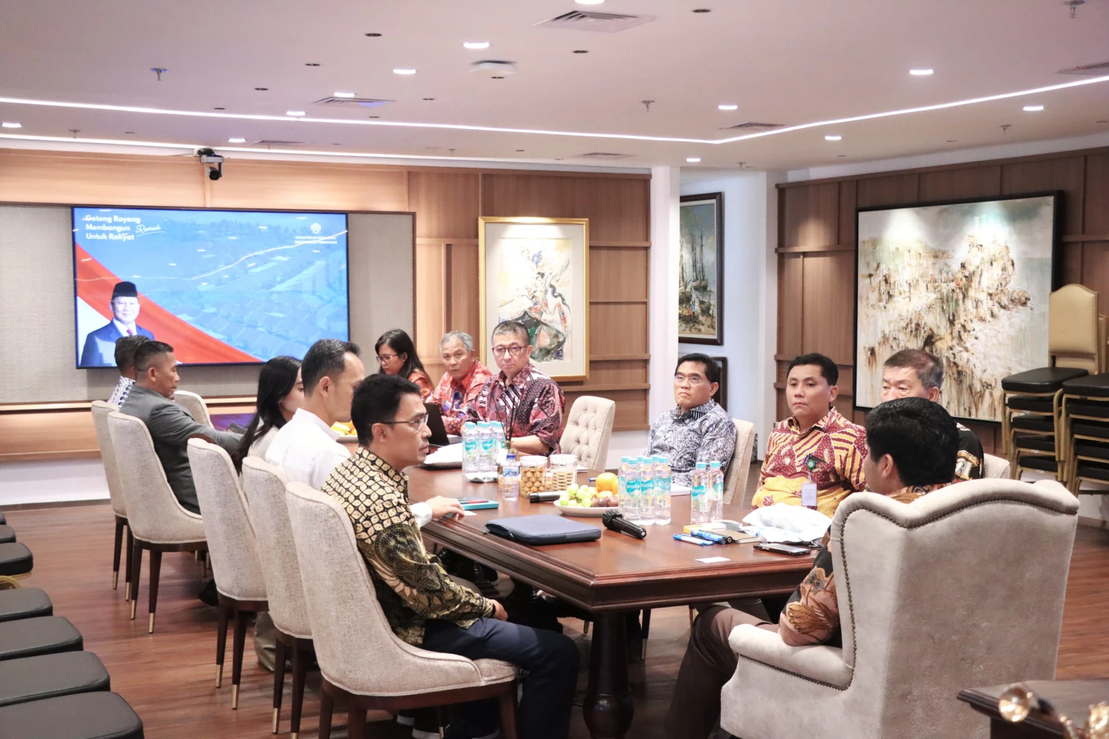 Menteri PKP didampingi sejumlah Eselon I berdiskusi dengan perwakilan dari PT. Colliers International Indonesia yakni Senior Associate Director Ferry Salanto, Senior Manager Eko Arfianto dan Research Executive Saskia Nabila Fatia Ananda terkait data dan hasil penelitian di sektor perumahan termasuk data apartemen di Jakarta yang hingga saat ini belum terjual serta mendapat masukan dan solusinya.