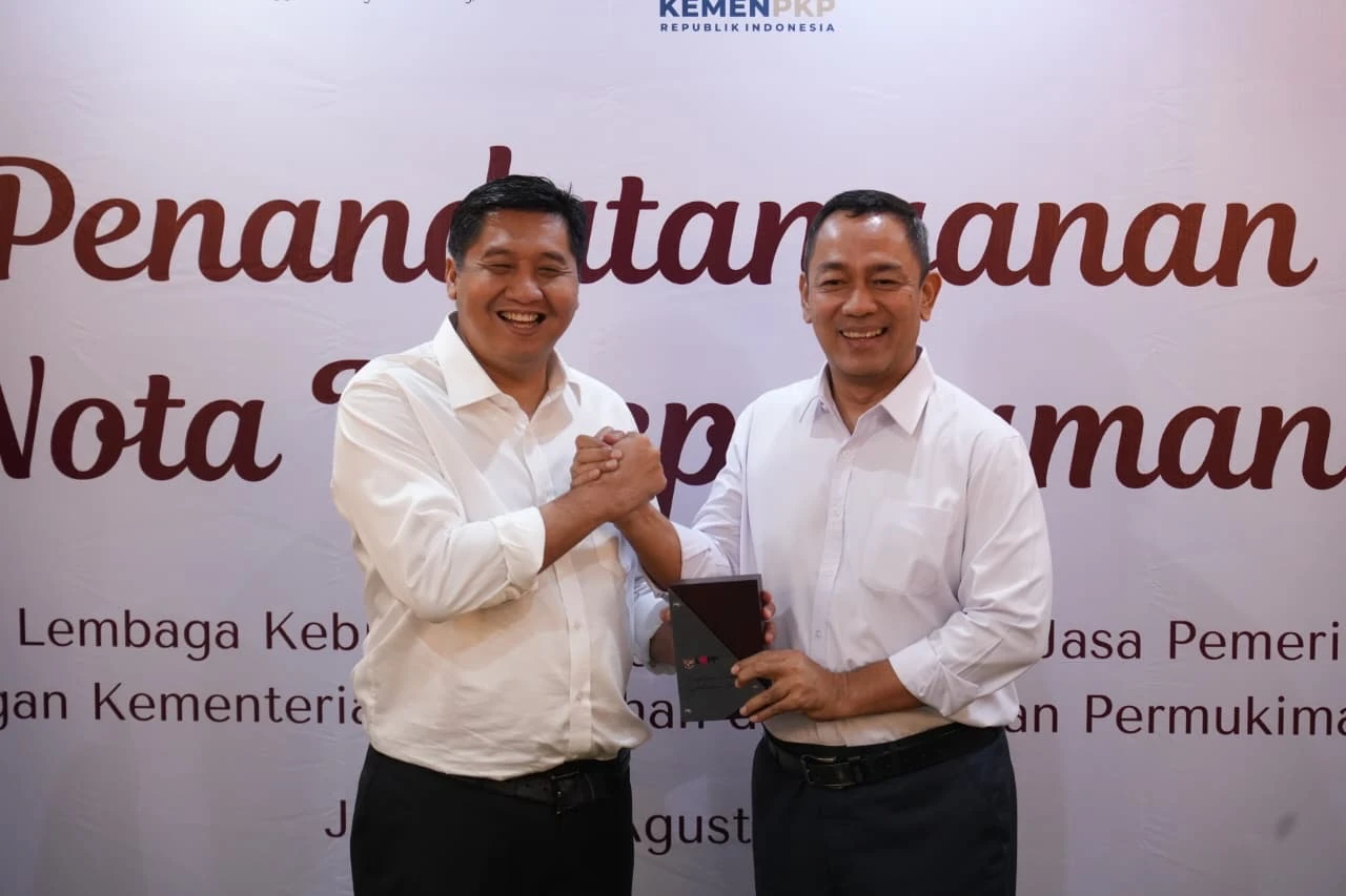 Penandatanganan MoU tentang Kolaborasi dan Sinergi Tugas dan Fungsi Dalam Pengadaan Barang/ Jasa Di Bidang Perumahan dan Kawasan Permukiman di Aula Roestam Sjarief Kantor LKPP
