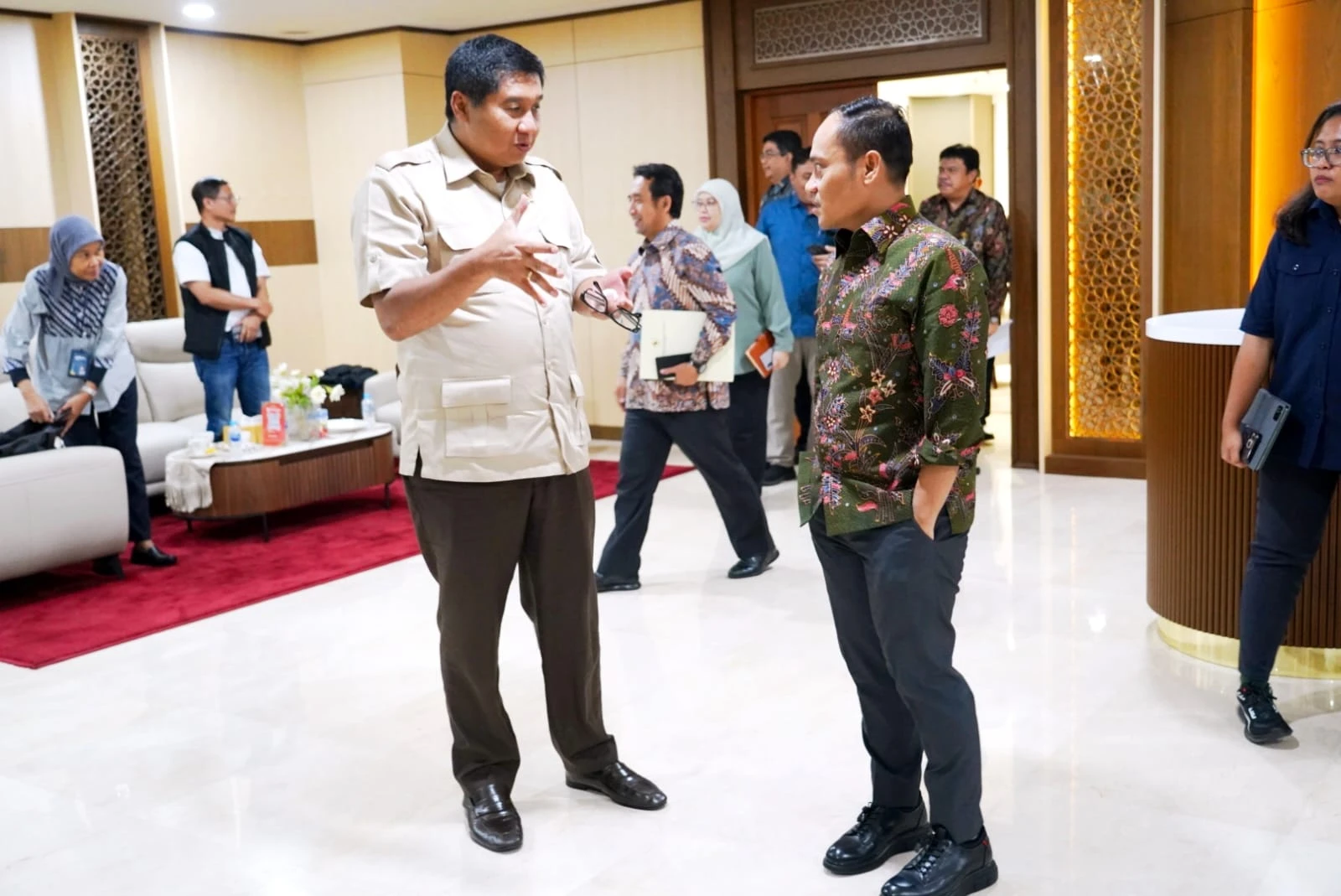 Pertemuan tersebut turut didampingi oleh jajaran pimpinan tinggi Kementerian PKP, antara lain Sekretaris Jenderal Didyk Choiroel, Inspektur Jenderal Heri Jerman, Direktur Jenderal Perumahan Perkotaan Sri Haryati, Direktur Jenderal Kawasan Permukiman Fitrah Nur, Staf Ahli Roberia, serta Staf Khusus Novelin