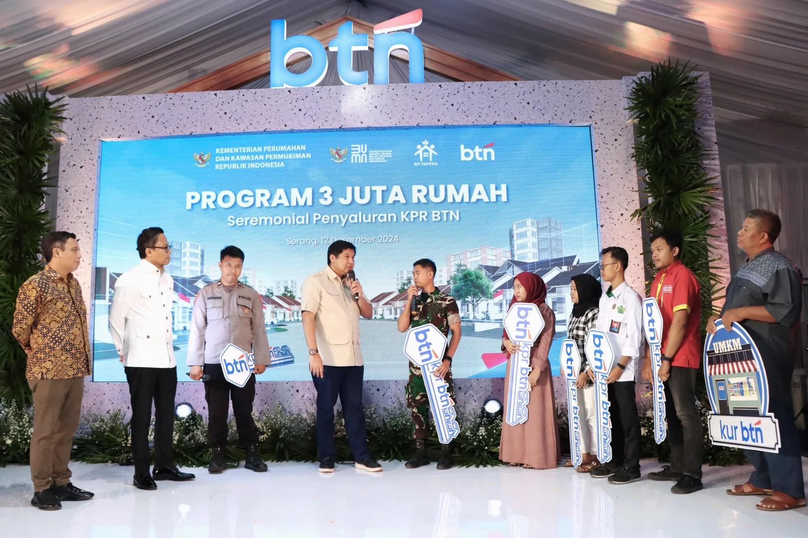 Prosesi seremonial penyaluran KPR BTN dilaksanakan oleh Menteri PKP bersama Direktur utama Bank BTN dan Pj Gubernur Banten dengan menyerahkan kunci secara simbolis kepada 7 perwakilan penerima kunci rumah yang terdiri dari TNI, anggota polri, wiraswasta, guru dan pegawai swasta. Acara ini dihadiri oleh 235 keluarga penerima fasilitas KPR BTN atau sekitar 400 orang bersama keluarga.