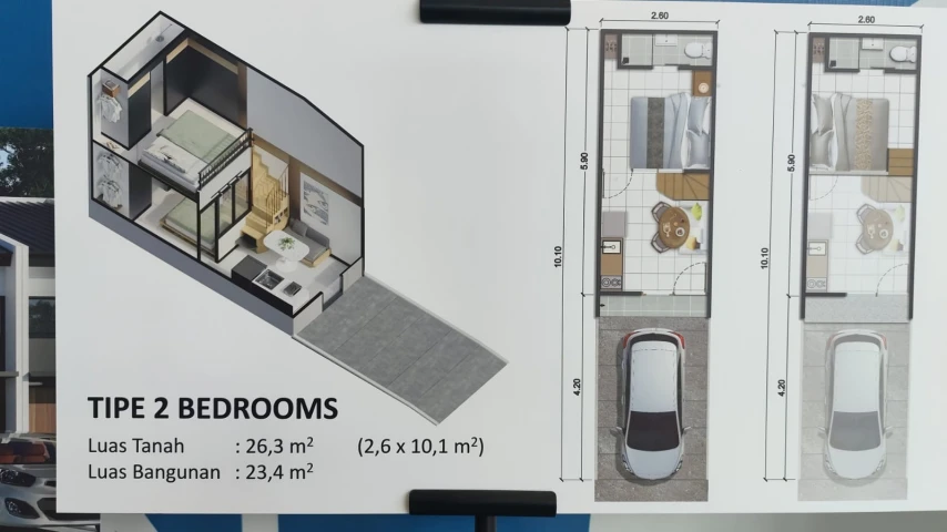 Setidaknya ada 2 tipe rumah yang bisa dilihat yakni Tipe 1 Kamar Tidur dengan Luas Tanah 25 meter persegi (2,6 x 9,6 meter) dan Luas Bangunan 14 meter persegi. Kedua adalah Tipe 2 Kamar tidur dengan Luas Tanah 26,3 meter persegi (2,6 x 10,1 meter) dan Luas Bangunan 23,4 meter persegi.