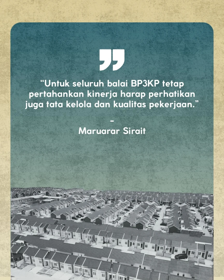 Menteri PKP Maruarar Sirait (Ara) menyampaikan apresiasi terhadap seluruh satuan kerja di daerah yang berhasil menunjukkan kinerja optimal. Secara keseluruhan, capaian ini mencerminkan keseriusan Kementerian PKP dalam memastikan pemerataan akses hunian layak di seluruh Indonesia. “Kami ingin agar program perumahan menjadi penggerak kesejahteraan masyarakat dan pembangunan kawasan yang inklusif, produktif, serta berkelanjutan,” kata Menteri Maruarar Sirait.