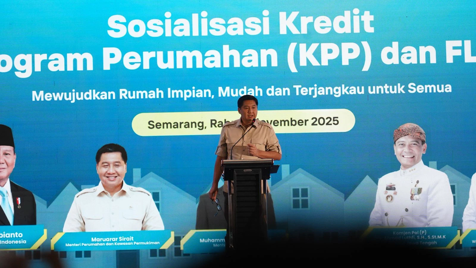 "Saya bersama Mendagri pada kegiatan Sosialisasi Kredit Program Perumahan (KPP) dan FLPP di Kota Semarang dan melihat semangat Gubernur Jateng dan Bank Jateng untuk melakukan terobosan dalam melayani rakyat di sektor perumahan. Gubernur Jateng sudah berkomitmen akan menggunakan semua alat dan media publikasi yang ada untuk digunakan untuk sosialisasi KPP dan FLPP. Kami optimis akan ada pergeseran besar dalam program perumahan di Jateng," ujar Menteri PKP saat memberikan sambutan pada kegiatan Sosialisasi KPP dan FLPP di Kota Semarang, Jawa Tengah, Rabu (5/11/2025).