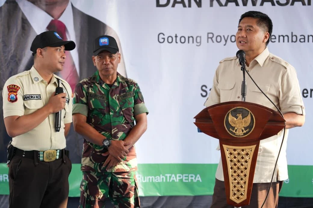 Jember - Menteri Perumahan dan Kawasan Permukiman (PKP) Maruarar Sirait (Ara) meninjau langsung kawasan Perumahan Bersubsidi Villa Bintaro Asri di Jalan Semangka, Glisat, Kelurahan Baratan, Kecamatan Patrang, Kabupaten Jember, Sabtu (18/10/2025). Dalam kunjungan ke perumahan bersubsidi sebanyak 500 unit tersebut Menteri Ara didampingi oleh Bupati Jember H. Muhammad Fawait, Inspektur Jenderal Kementerian PKP Heri Jerman, Direktur Jenderal Perumahan Perkotaan Sri Haryati, serta Komisioner BP Tapera Heru Pudyo Nugroho.