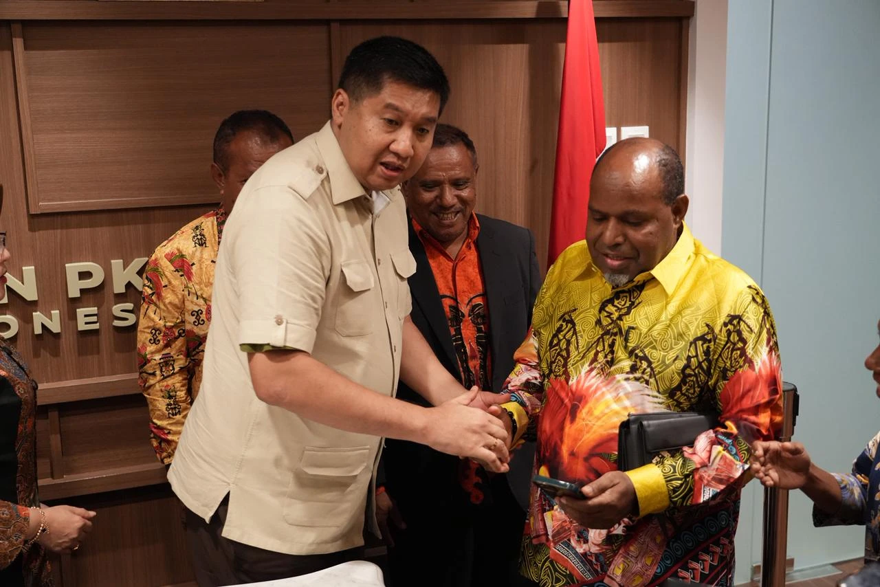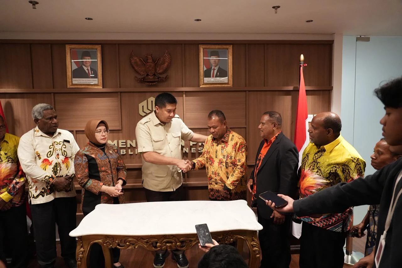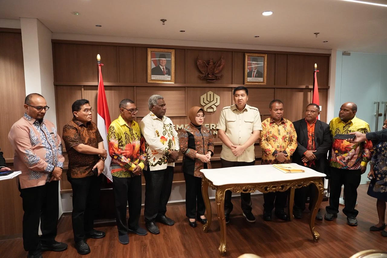 JAKARTA — Menteri Perumahan dan Kawasan Permukiman (PKP) Maruarar Sirait menerima kunjungan Pimpinan dan Anggota Majelis Rakyat Papua (MRP) di Ruang Menteri, Kementerian PKP, Wisma Mandiri 2, Jakarta Pusat, Jumat (14/11/2025) malam.
