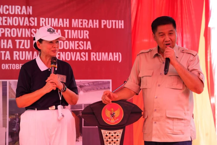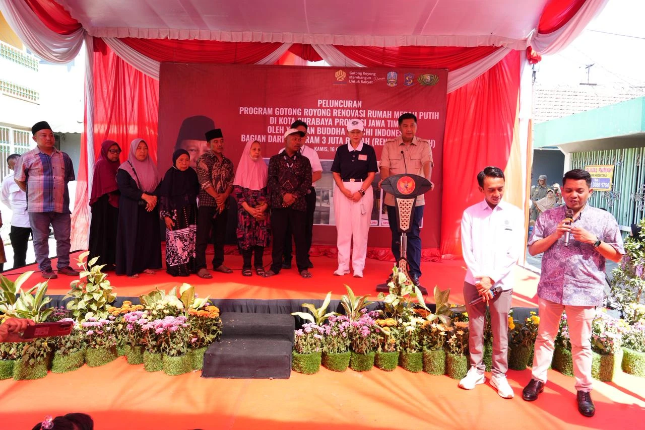 "Yayasan Buddha Tzu Chi adalah yayasan yang paling besar merenovasi rumah secara gratis bagi rakyat Indonesia. Ada 5.000 rumah di Banten, Jakarta, Jawa Barat, Jawa Tengah, Jawa Timur, Sumatera Utara, dan Sumatera Selatan. Di Surabaya total ada 500 rumah. Saya berterima kasih kepada Yayasan Buddha Tzu Chi,"