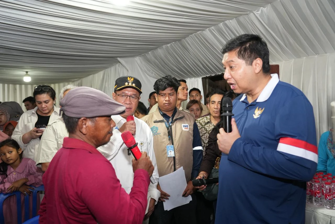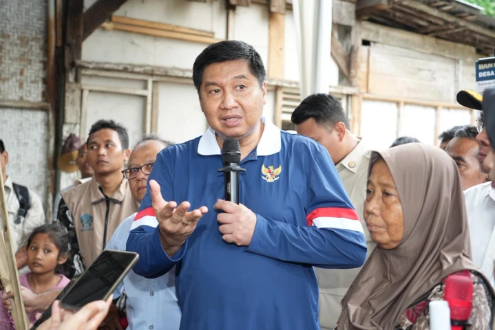 BANYUMAS – Menteri Perumahan dan Kawasan Permukiman (PKP) Maruarar Sirait meninjau pelaksanaan Bantuan Stimulan Perumahan Swadaya (BSPS) di Desa Kalisube, Kecamatan Banyumas, Kabupaten Banyumas, Sabtu (8/11/2025). Kunjungan ini dilakukan untuk memastikan program BSPS bagi masyarakat berjalan tepat sasaran dan memberikan manfaat nyata.