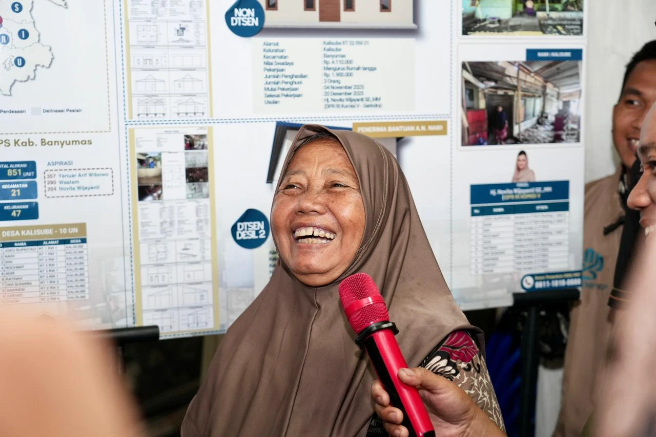 “Alhamdulillah senang, rumah diperbaiki menjadi baik. Atapnya bocor pak, kamar mandi juga di luar,_matur nuwun Pak Presiden Prabowo, semoga diparingi sehat_ (Terima Kasih Pak Presiden Prabowo, semoga sehat selalu),” ungkap Nawi, warga RT 01 Desa Kalisube, Banyumas.