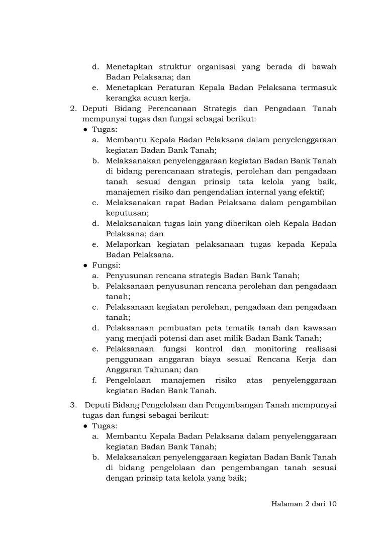 Seleksi terbuka ini dilakukan untuk mengisi lima jabatan, yaitu Kepala Badan Pelaksana Badan Bank Tanah, Deputi Bidang Perencanaan Strategis dan Pengadaan Tanah, Deputi Bidang Pengelolaan dan Pengembangan Tanah, Deputi Bidang Pemanfaatan Tanah dan Kerja Sama Usaha, serta Deputi Bidang Keuangan dan Umum.