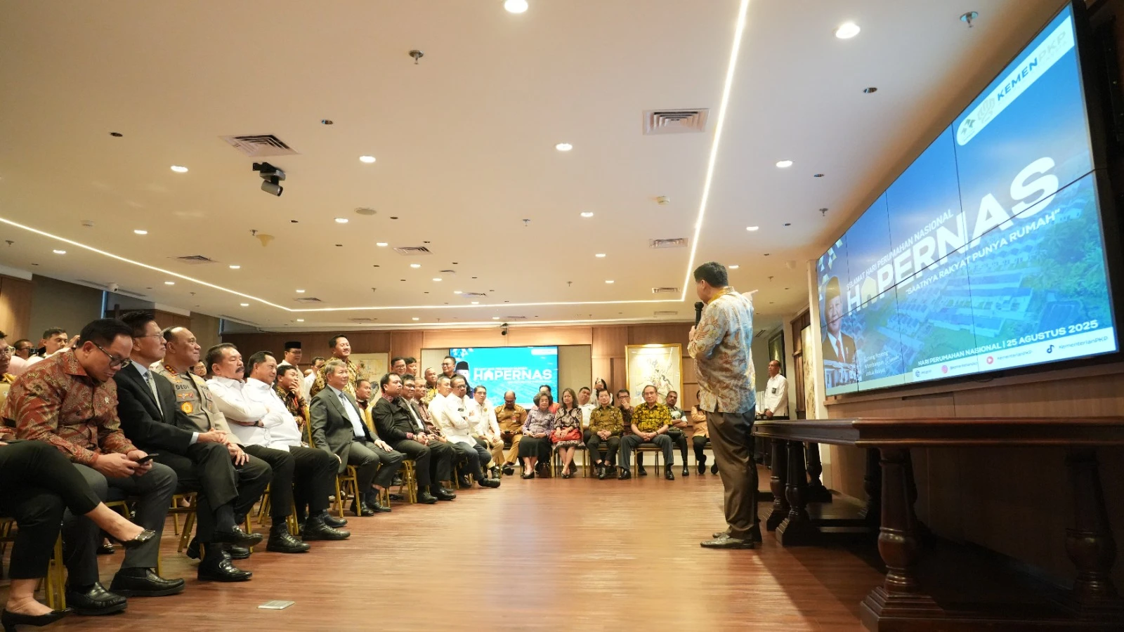 “Hari ini tanggal 25 Agustus bertepatan dengan Peringatan Hari Perumahan Nasional (Hapernas) XVII Tahun 2025 saya memberikan penghargaan pada para tokoh yang berperan penting dalam program pembangunan perumahan di Indonesia serta mitra kerja Kementerian PKP dalam melaksanakan Program 3 Juta Rumah,” ujar Menteri PKP, Maruarar Sirait.