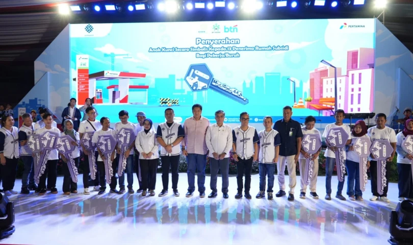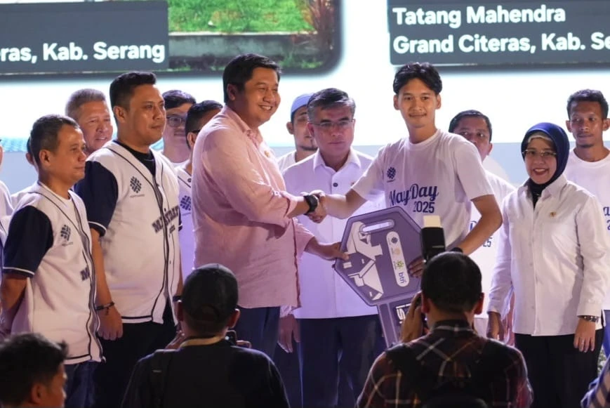Jakarta - Menteri Perumahan dan Kawasan Permukiman (PKP) Maruarar Sirait menyerahkan 100 kunci rumah subsidi untuk para buruh dalam rangka memperingati Hari Buruh pada 1 Mei 2025 di Universitas Pertamina, Jakarta. Dengan memiliki rumah subsidi yang berkualitas dan harga serta cicilan KPR FLPP yang terjangkau, para buruh diharapkan bisa lebih semangat bekerja dan meningkatkan kesejahteraan para buruh.
