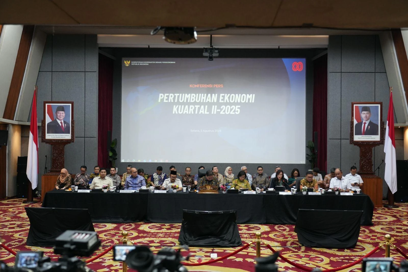 Turut hadir dalam konferensi pers tersebut sejumlah menteri dan pimpinan lembaga negara, antara lain Menteri Keuangan Sri Mulyani, Kepala Bappenas Rachmat Pambudy, Menteri Investasi dan Hilirisasi/BKPM Rosan Perkasa Roeslani, Menteri Perdagangan Budi Santoso, Menteri Pariwisata Widiyanti Putri Wardhana, Kepala Badan Gizi Nasional (BGN) Dadan Hindayana.