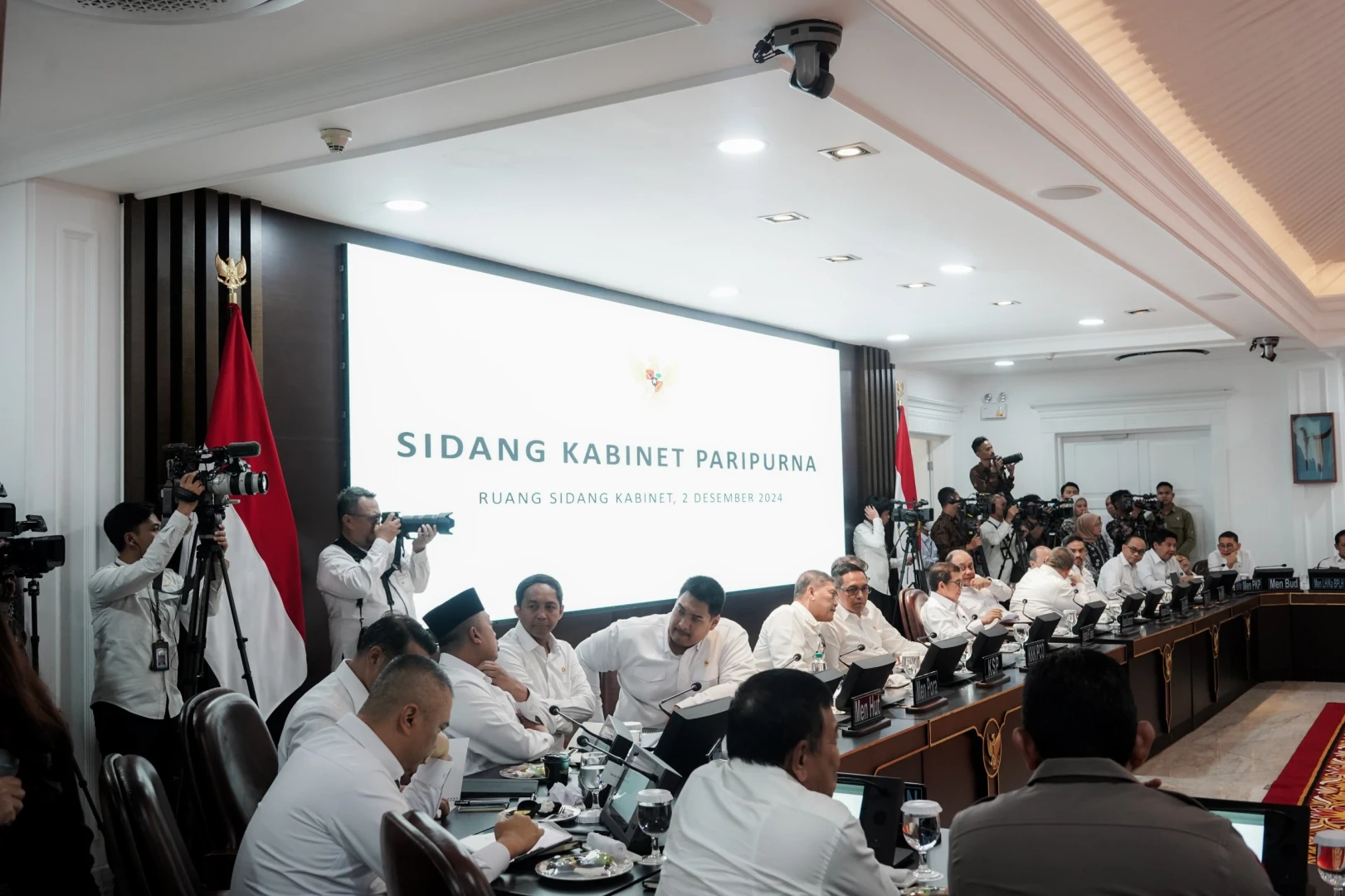 Jakarta - Presiden Prabowo Subianto memberikan apresiasi kepada para Menteri Kabinet Merah Putih yang telah bekerja dengan kompak selama satu bulan setelah dilantik. Hal tersebut disampaikan Presiden dalam Sidang Kabinet Paripurna di Istana Kepresidenan Jakarta, Senin (2/12/2024) yang juga dihadiri Menteri Perumahan dan Kawasan Permukiman (PKP) Maruarar Sirait bersama Wakil Menteri Fahri Hamzah.