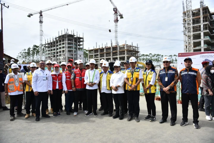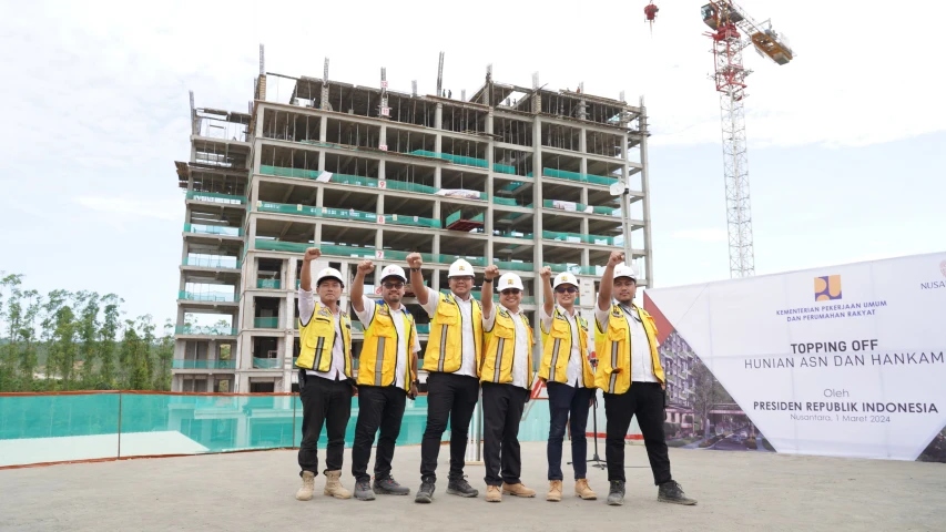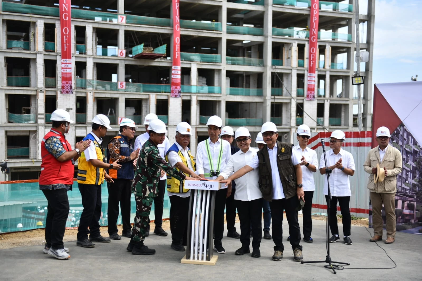 Turut hadir Menteri PAN RB Abdullah Azwar Anas, Menteri BUMN Erick Thohir, Menteri ATR/BPN Agus Harimurti Yudhoyono, Menteri Perdagangan Zulkifli Hasan, Menteri Investasi Bahlil Lahadalia, Kepala Otorita IKN Bambang Susantono, Pj Gubernur Kaltim Akhmal Malik, Pj Bupati Penajam Paser Utara Makmur Marbun, dan Kurator Pembangunan IKN Ridwan Kamil. (BALAI P2P KALIMANTAN II/ BAGIAN HUKUM DAN KOMUNIKASI PUBLIK DIREKTORAT JENDERAL PERUMAHAN KEMENTERIAN PUPR)