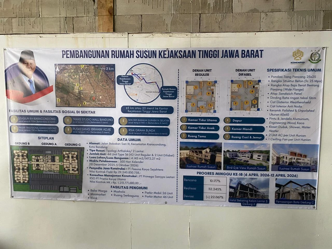 Dalam peninjauan yang turut dihadiri Gubernur Jawa Barat Dedi Mulyadi dan Kepala Kejaksaan Tinggi Jawa Barat Hermon Dekristo, proyek ini menunjukkan progres signifikan. Realisasi fisik telah mencapai 32,40% dari rencana 10,18%, atau deviasi positif +22,22%, dengan realisasi keuangan sebesar 20%. Proyek ditargetkan selesai pada 5 Oktober 2026.