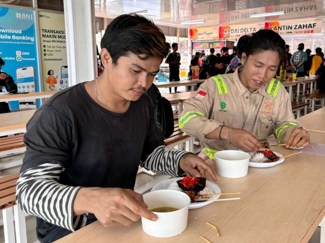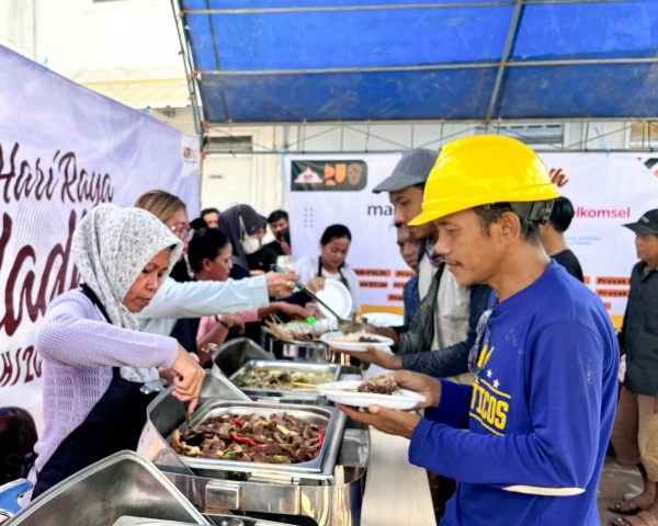 Ibu Kota Nusantara (IKN) - Ribuan pekerja konstruksi yang bekerja membangun berbagai infrastruktur di Ibu Kota Nusantara (IKN) hari ini bisa menikmati makan siang dan makan malam secara gratis di sejumlah titik yang ada di kawasan Hunian Pekerja Kontruksi (HPK). Hal itu merupakan bagian dari rangkaian Peringatan Hari Raya Idul Adha 1445 Hijriah Tahun 2024 yang diselenggarakan oleh Kementerian PUPR dan Dewan Kemakmuran Masjid (DKM) Masjid Al Ikhwan HPK bersama masyarakat sekitar IKN.
