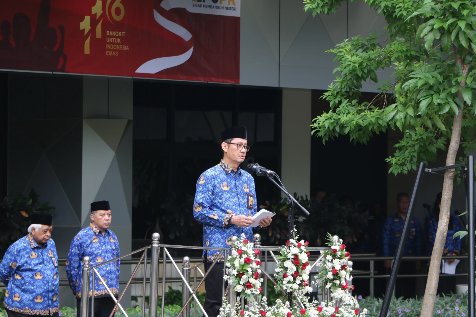 Jakarta – Sekretaris Direktorat Jenderal Perumahan (Sesditjen Perumahan) Kementerian PUPR, Ir. M Hidayat, MM menjadi Inspektur Upacara dalam rangka Peringatan Hari Kebangkitan Nasional (Harkitnas) ke 116 Tahun 2024 di Lapangan Upacara Sapta Taruna Kementerian PUPR, Senin (20/5/2024). Kegiatan upacara yang mengangkat tema “Kebangkitan Kedua Menuju Indonesia Emas” ini diikuti oleh para pegawai perwakilan dari unit organisasi di Kementerian PUPR serta Dewan Pengurus Korpri.