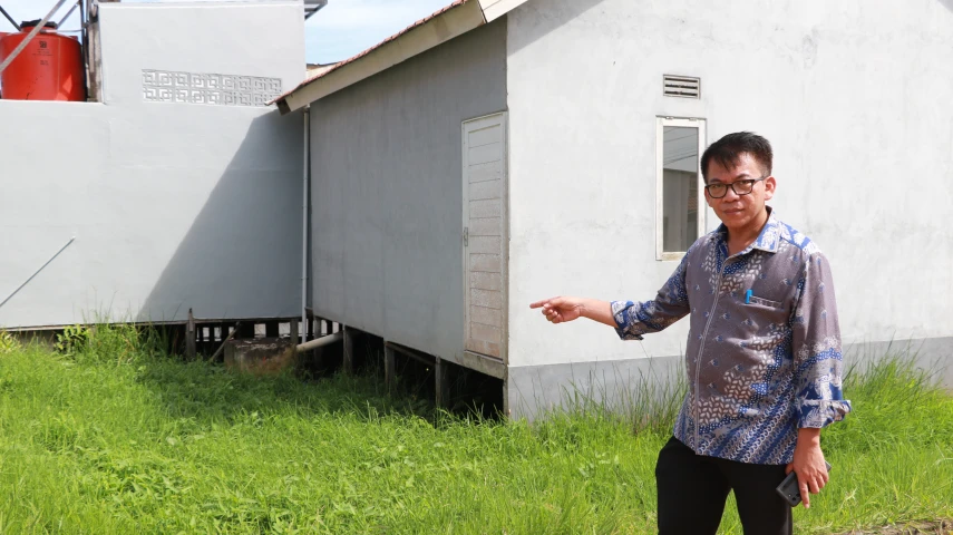 Lokasi pertama yang ditinjau adalah Perumahan Green Aulia yang berlokasi di Kec. Delta Pawan. Rumah ini dibangun menggunakan pondasi tongkat dengan kayu ulin.