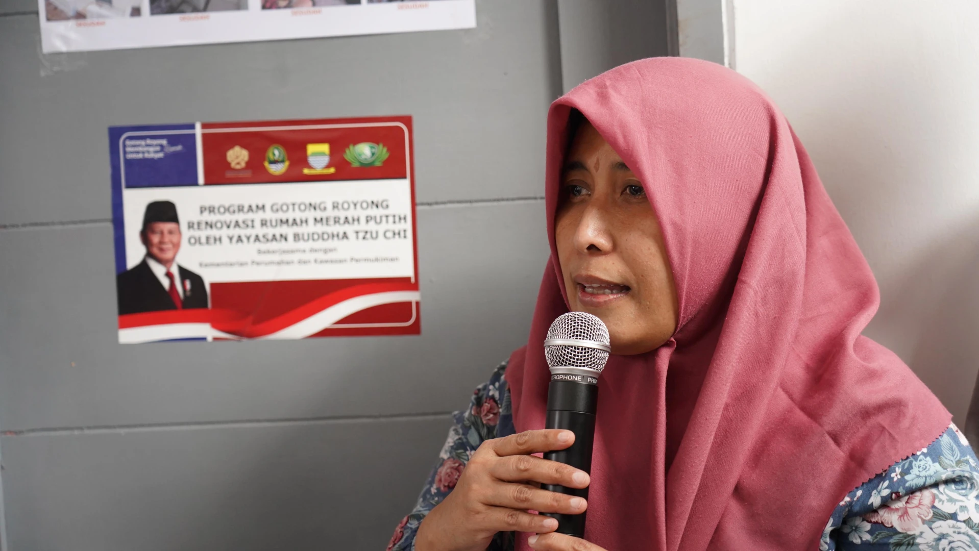 Salah satu penerima bantuan, Ibu Lilis, menyampaikan rasa syukur atas renovasi rumahnya.“Terima kasih kepada Kementerian PKP dan Yayasan Buddha Tzu Chi. Sekarang rumah saya sudah layak huni. Dulu atap bocor dan tembok miring,” ujarnya.