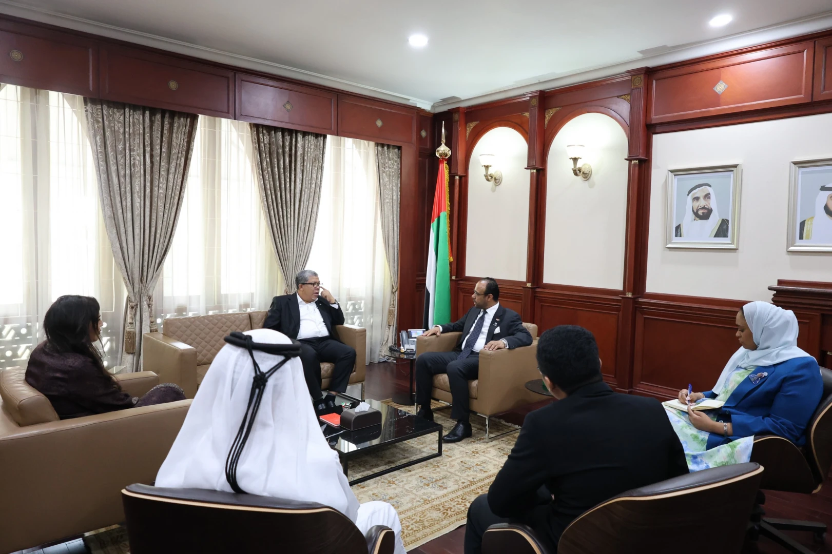 Jakarta - Wakil Menteri (Wamen) Perumahan dan Kawasan Permukiman (PKP) Fahri Hamzah melakukan pertemuan dengan Duta Besar Uni Emirat Arab (UEA) Abdulla Salem Al-Dhaheri di kantor Kedutaan UEA, Selasa (20/1/2025).