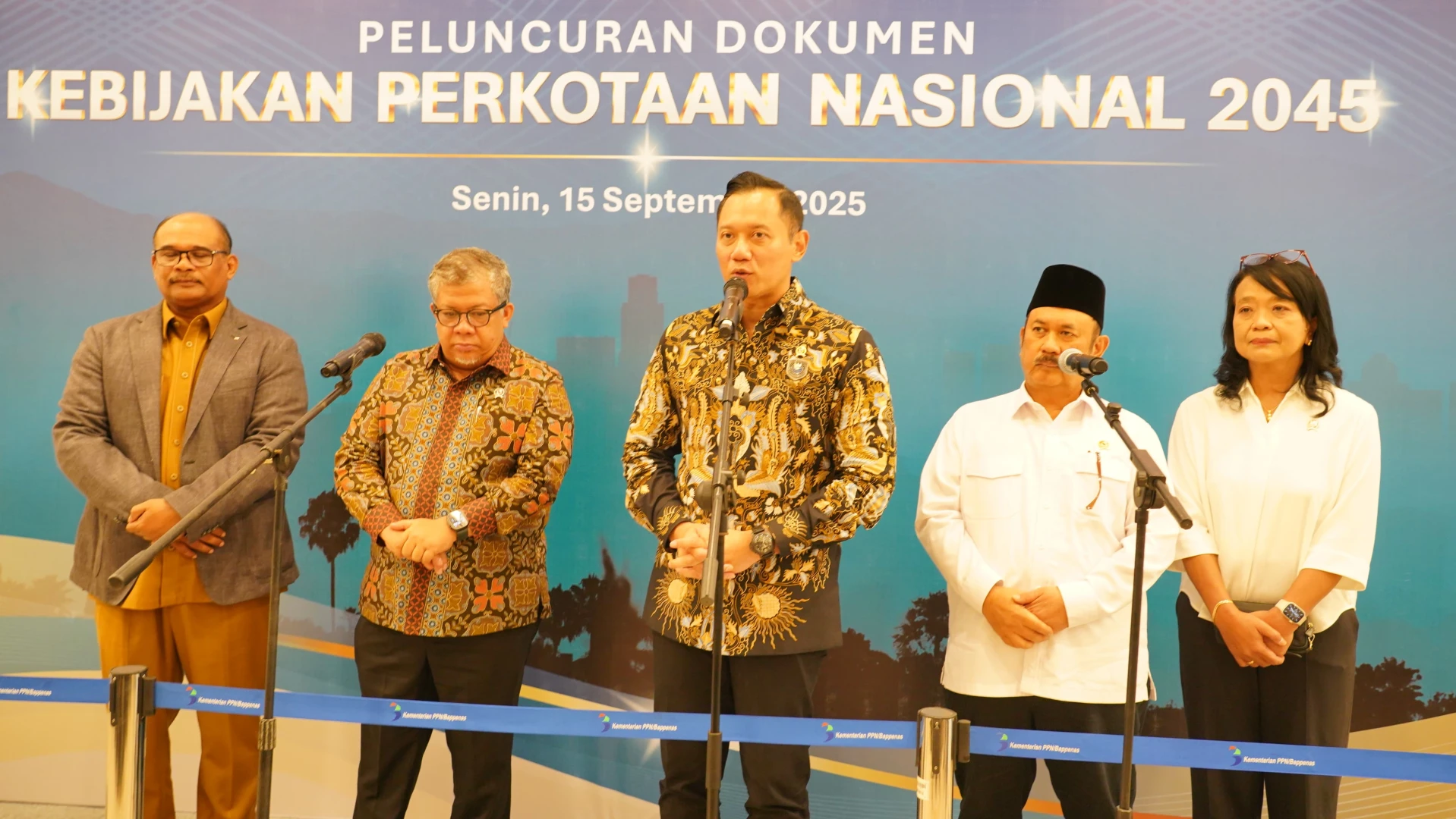 Wakil Menteri Perumahan dan Kawasan Permukiman (PKP), Fahri Hamzah, menghadiri Peluncuran Dokumen Kebijakan Perkotaan Nasional 2045 di Ruang Rapat Djunaedi Hadisumarto, Kementerian PPN/Bappenas, Jakarta, Senin (15/9/2025).