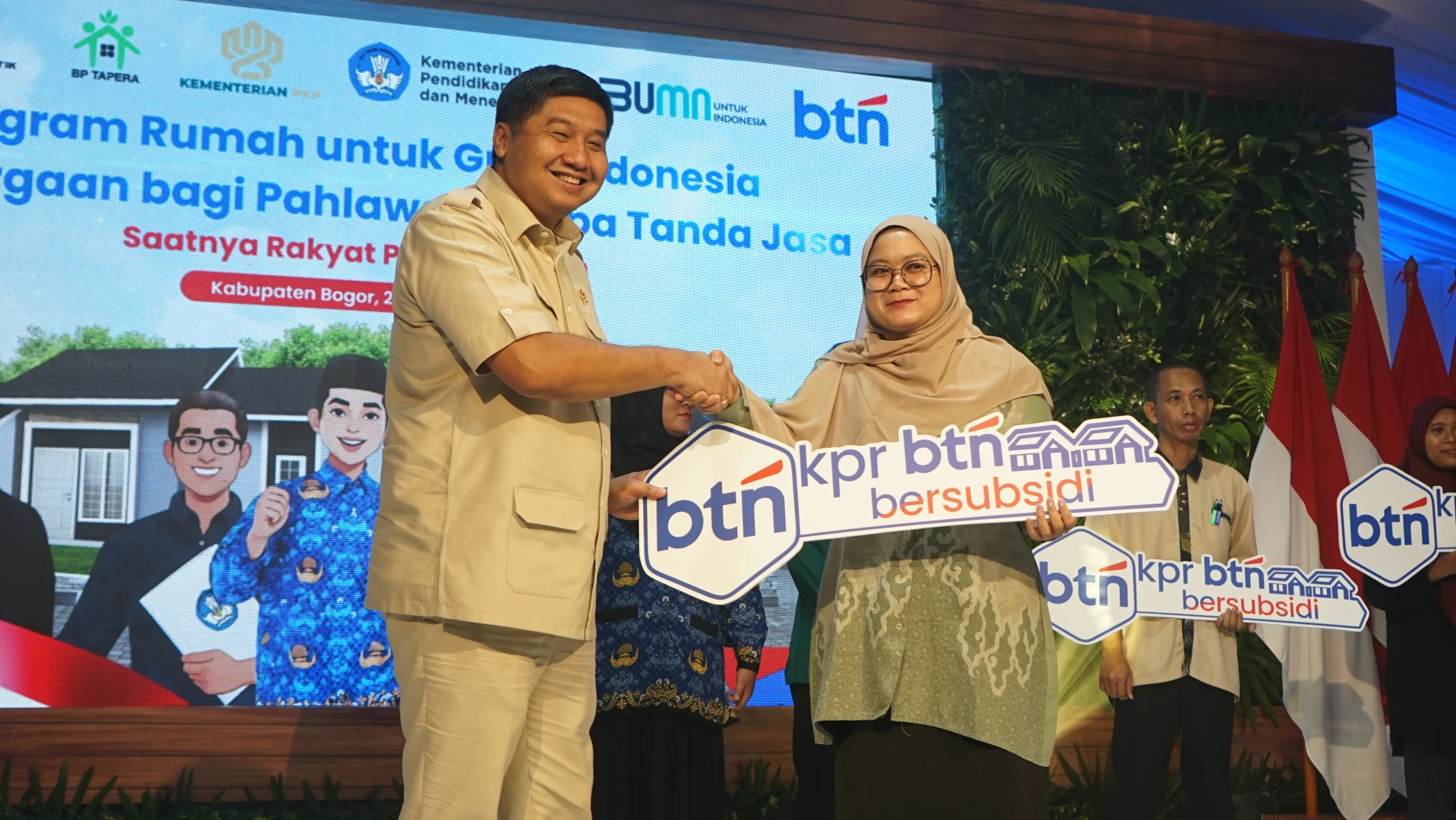 MENTERI PKP SERAH TERIMA KUNCI UNTUK GURU DI PERUMAHAN PURI HARMONI 11 JONGGOL KABUPATEN BOGOR