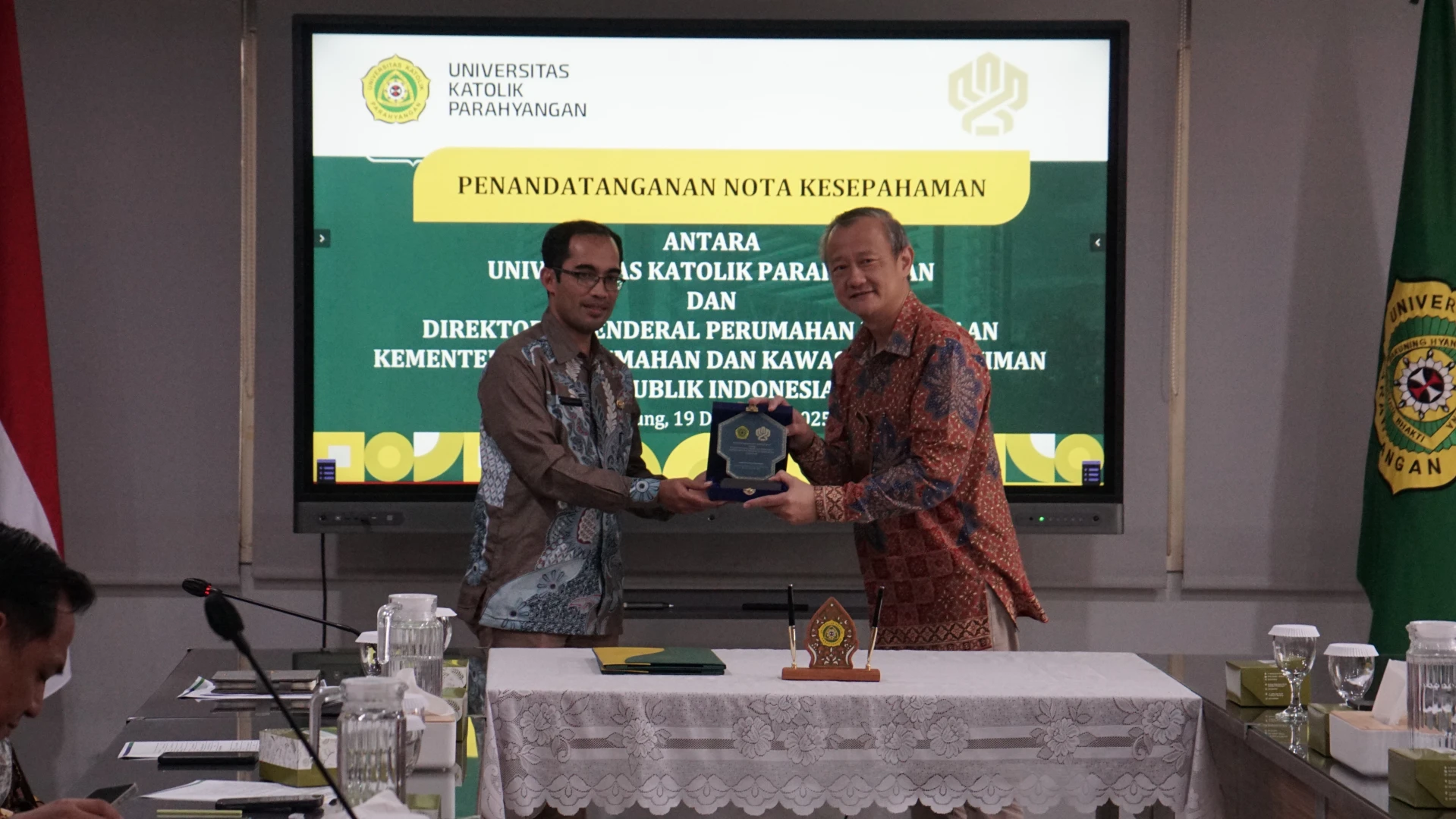 Direktorat Jenderal Perumahan Perdesaan bersama Universitas Katolik Parahyangan (UNPAR) menyelenggarakan Konsultasi Publik dan Penandatanganan Nota Kesepahaman (MoU) pada Jumat, 19 Desember 2025 di Kampus UNPAR. Kegiatan ini menjadi forum strategis untuk memperkuat peran perguruan tinggi dalam mendukung kebijakan dan program pembangunan perumahan nasional, khususnya di wilayah perdesaan.